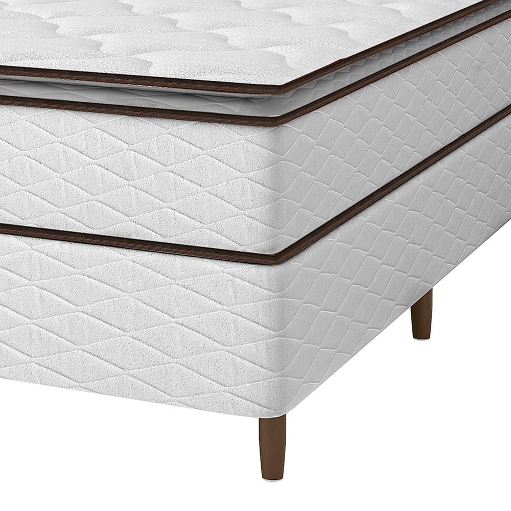 Cama Box de Casal Umaflex New Itália com Molas Ensacadas e Pillow Top D26 - 63x138x188cm - Branco/Marrom