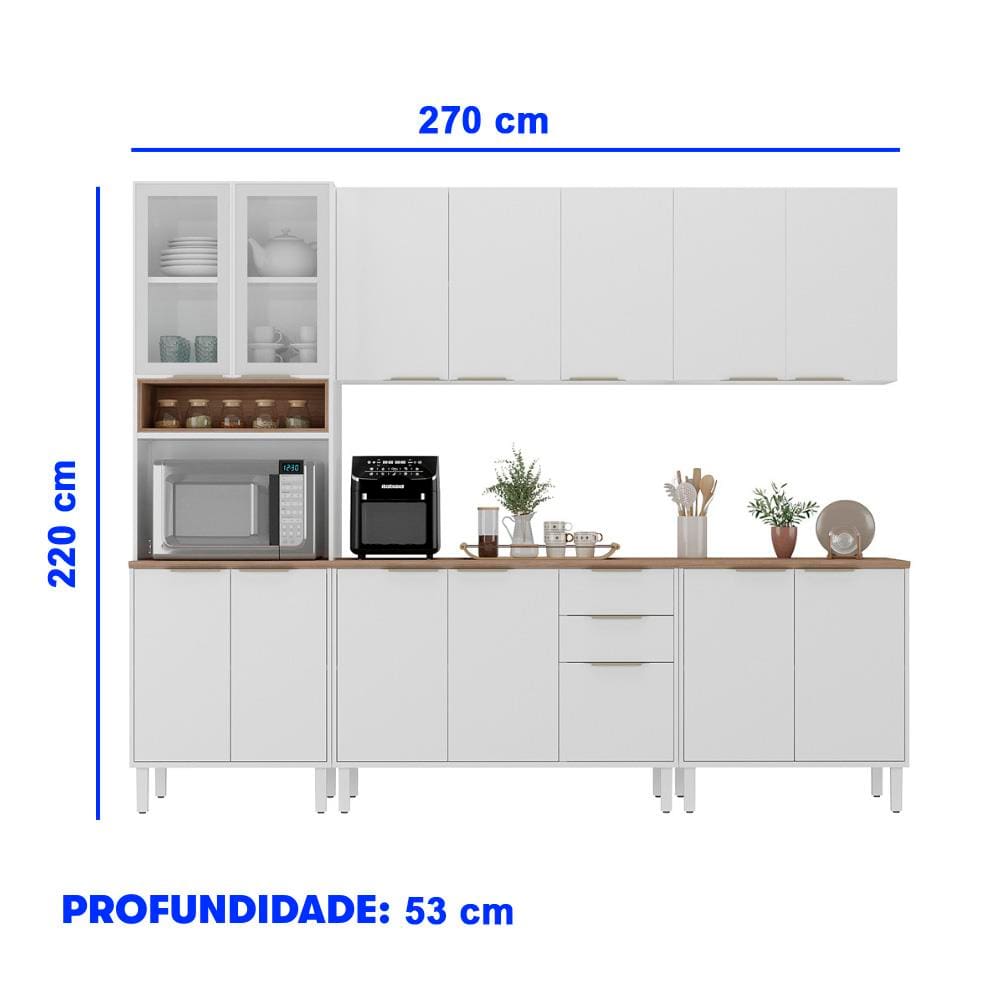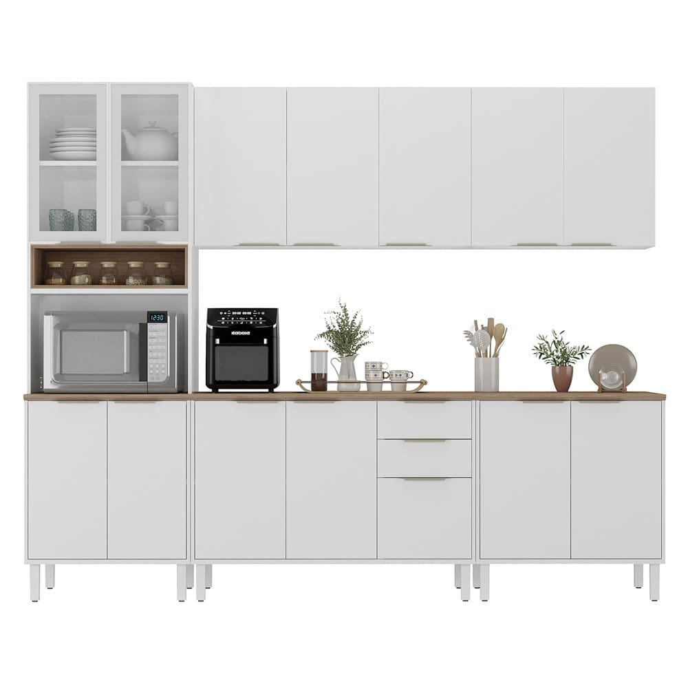 Cozinha Completa Itatiaia Renova com 14 Portas, 2 Gavetas, 7 Prateleiras, Nicho para Micro-ondas e 270cm de largura - Branco Neve