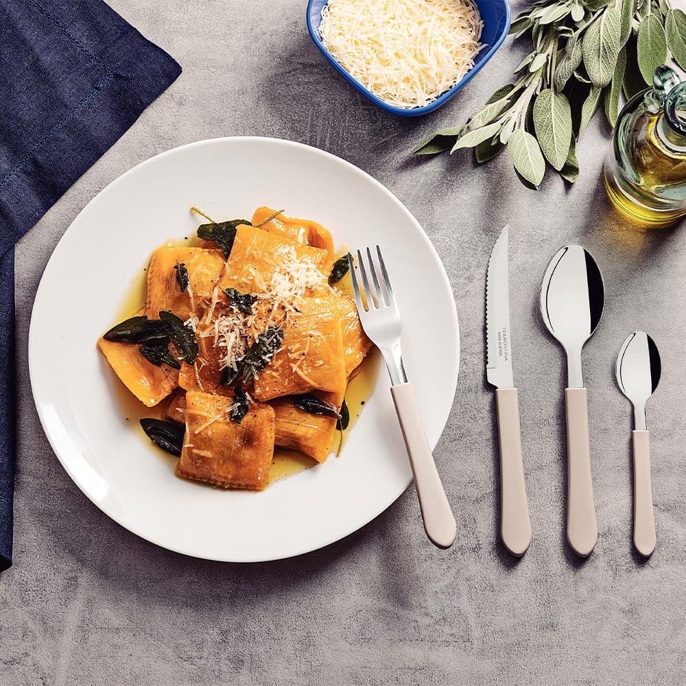 Conjunto de Panelas Tramontina Sicilia com Revestimento Starflon Excellent Vermelho – 5 Peças + Faqueiro 12 Peças Tramontina Leme - Cinza