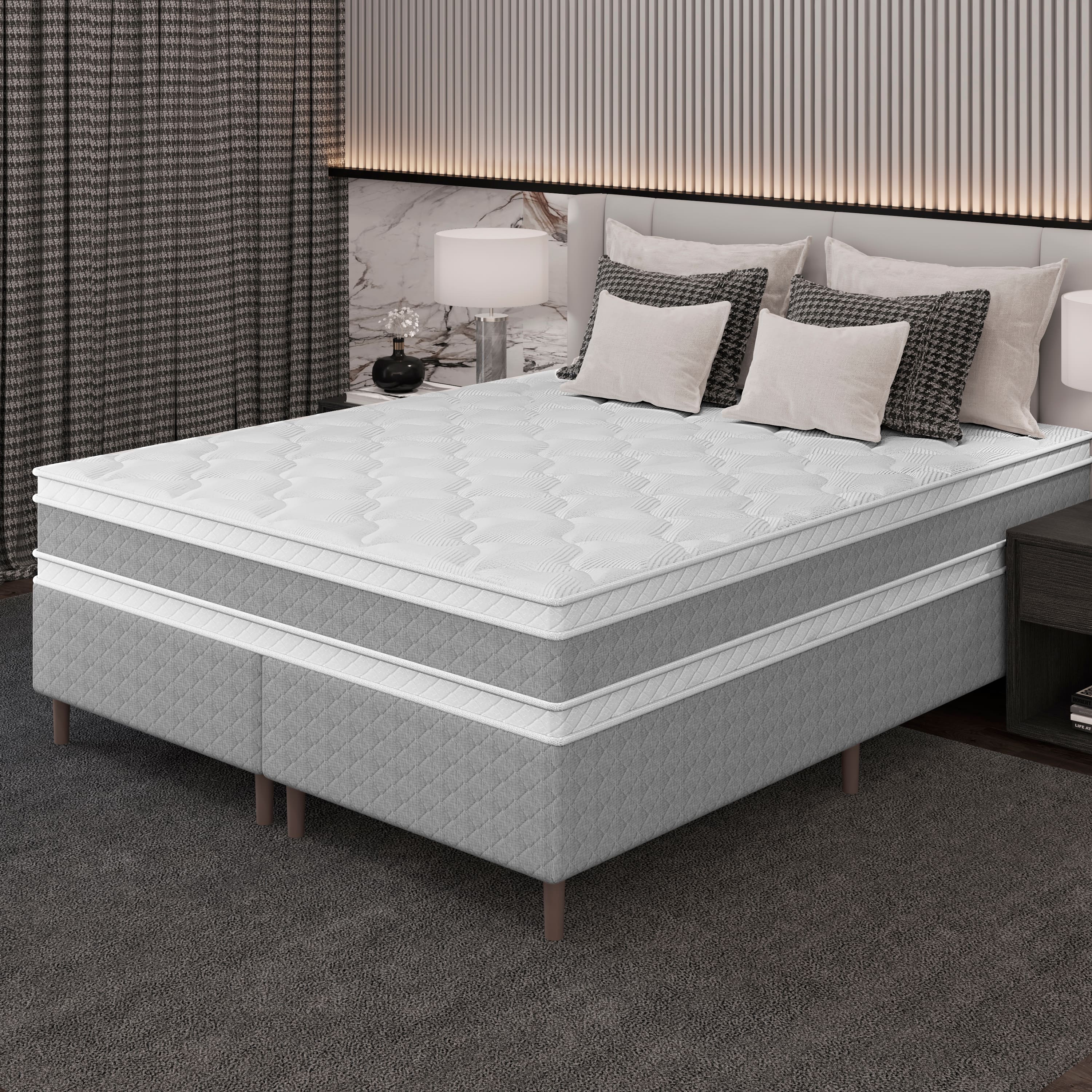 Tecnologia Euro Top para suporte extra, além de tecido em malha respirável que regula a temperatura, mantendo o colchão sempre fresco e confortável.