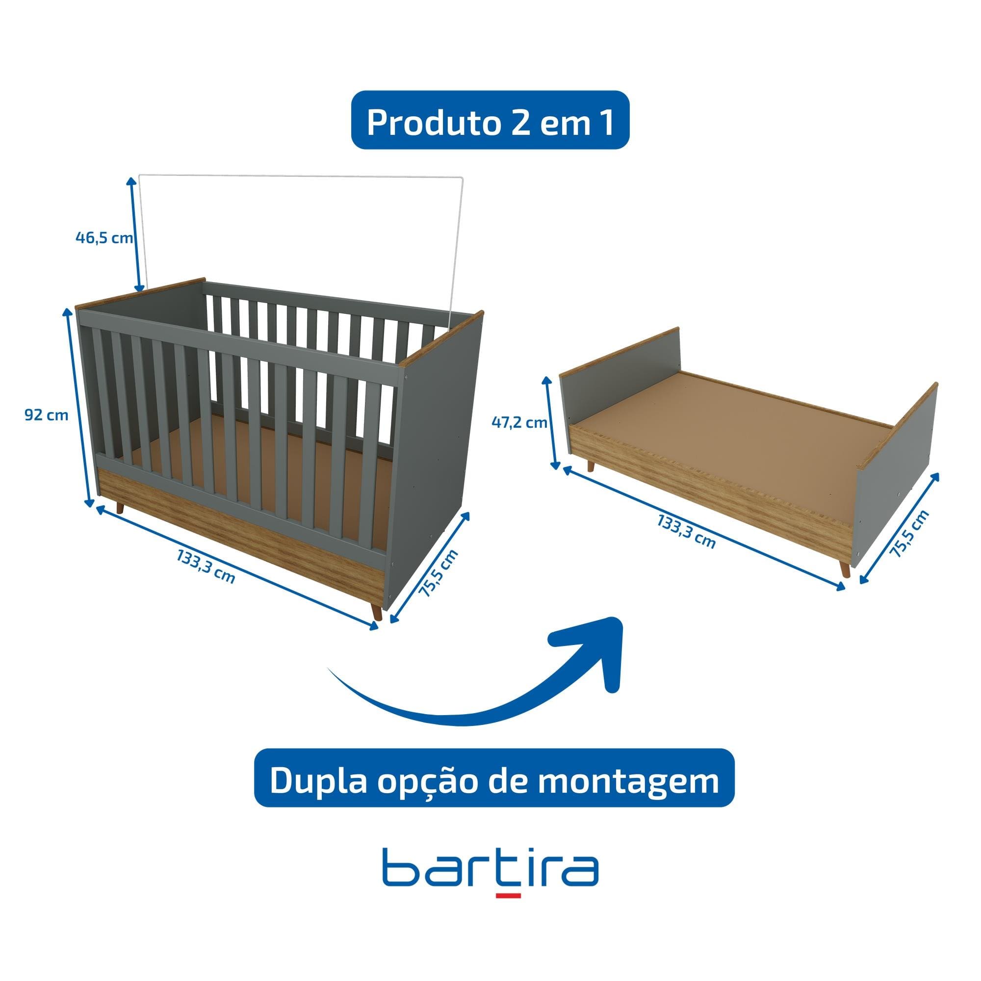 Quarto Infantil Completo Bartira Ternura Guarda-Roupa 3 Portas 2 Gavetas Cômoda 5 Gavetas Berço 2 em 1