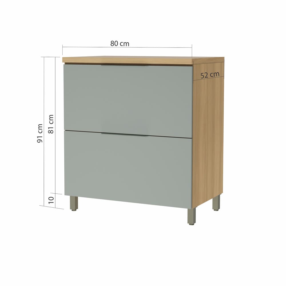 Paneleiro Nesher Marquesa 70cm MDF 15mm com 2 Portas, 2 Gavetas e 3 Prateleiras - Nature/Verde
