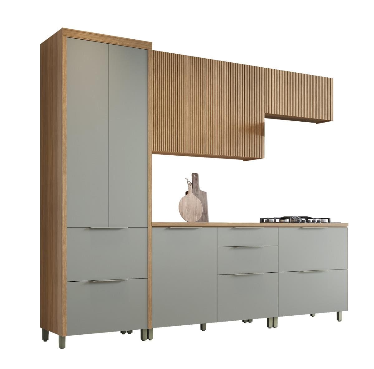 Cozinha Completa Nesher Paris Armário Aéreo + Armário Geladeira + Balcão + Paneleiro - 5 Peças e 7 Portas