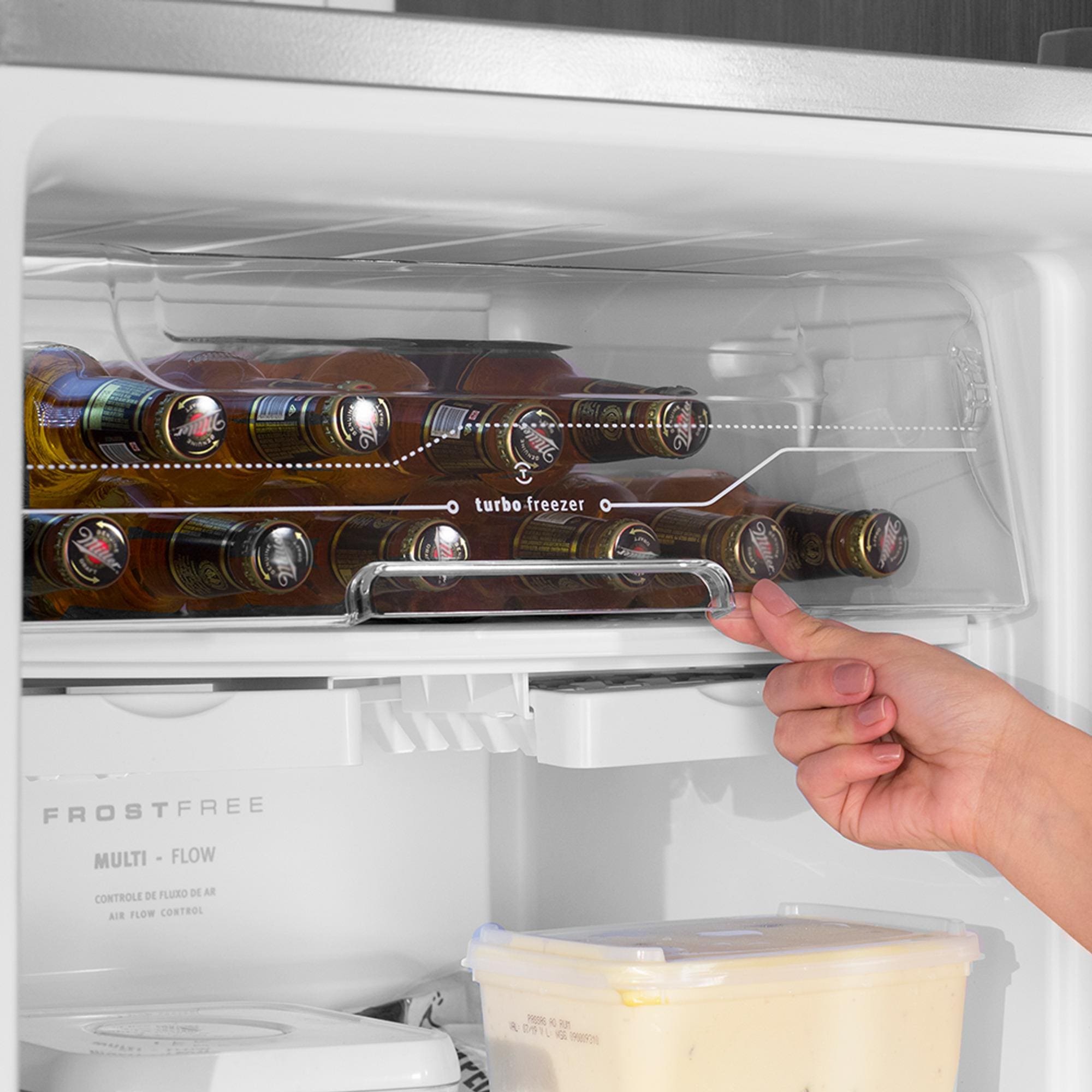 O congelamento rápido é um dos grandes diferenciais deste modelo. Com a função Drink Express, suas bebidas gelam em tempo recorde, direto na porta da geladeira. Diga adeus à espera e desfrute de praticidade e economia de energia.