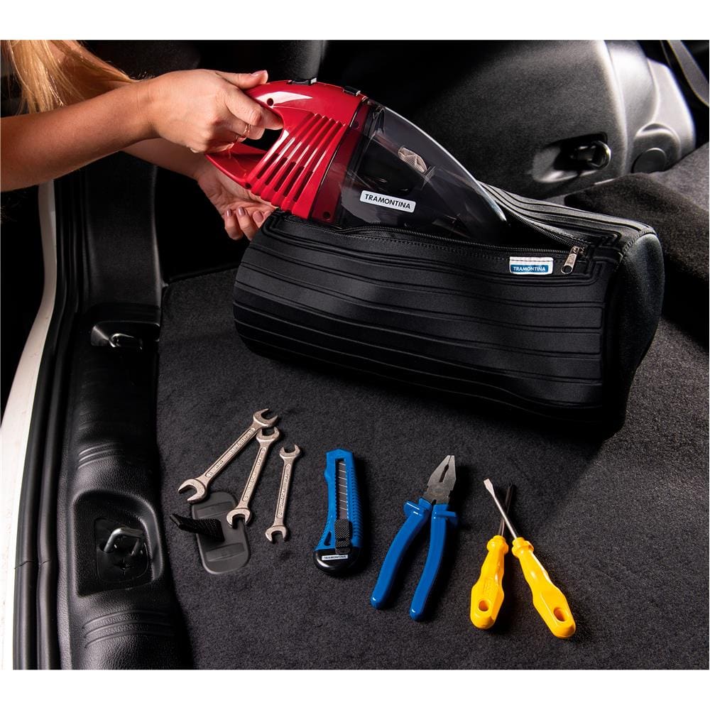 Além disso, também conta com aspirador de carro 12 V e um prático estojo em EVA, que pode ser fixado no porta-malas através de seu velcro.