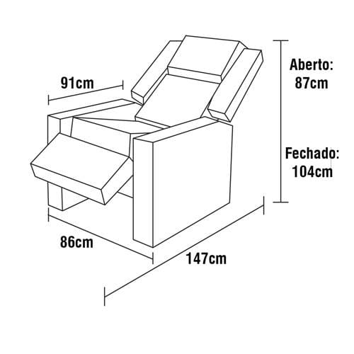 Profundidade (cm): Fechado: 91 / Aberto: 147