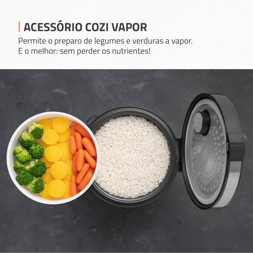 Possui uma capacidade para até 6 xícaras, permitindo você cozinhar para toda a família e cozinhar legumes e verduras no vapor enquanto prepara o arroz.