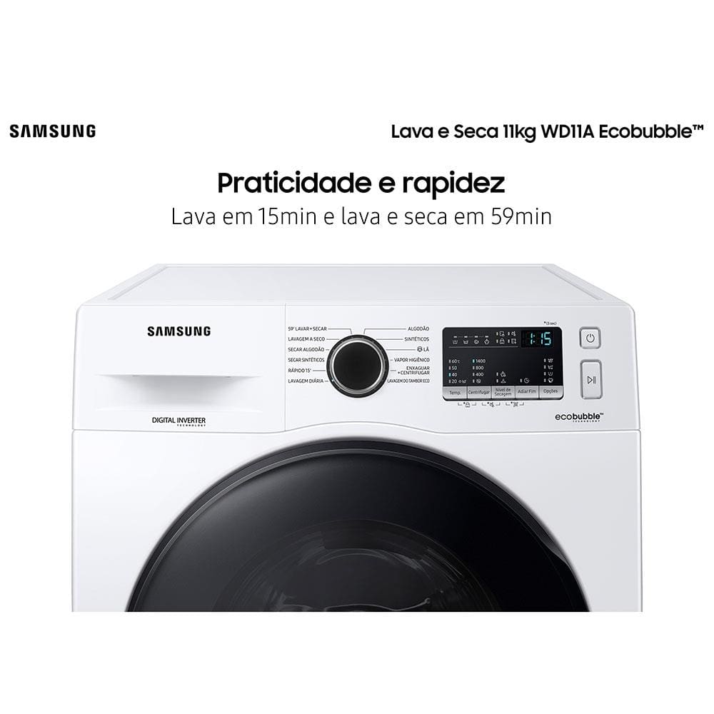 Lava e Seca Samsung WD11A 3 em 1 Branca com Ecobubble e Lavagem a Seco WD11A4453BW – 11 kg