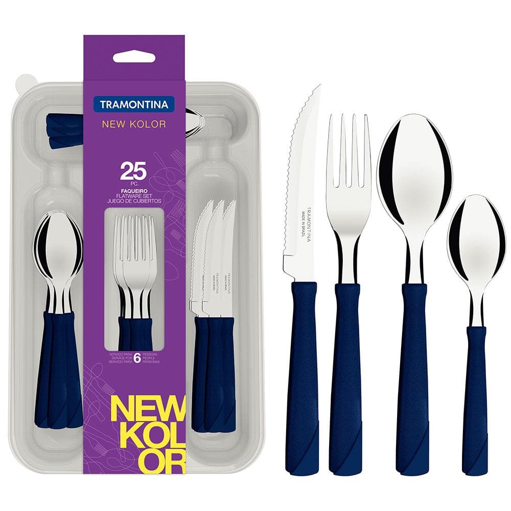 Faqueiro 25 Peças Tramontina New Kolor em Aço Inox com Gaveteiro - Azul
