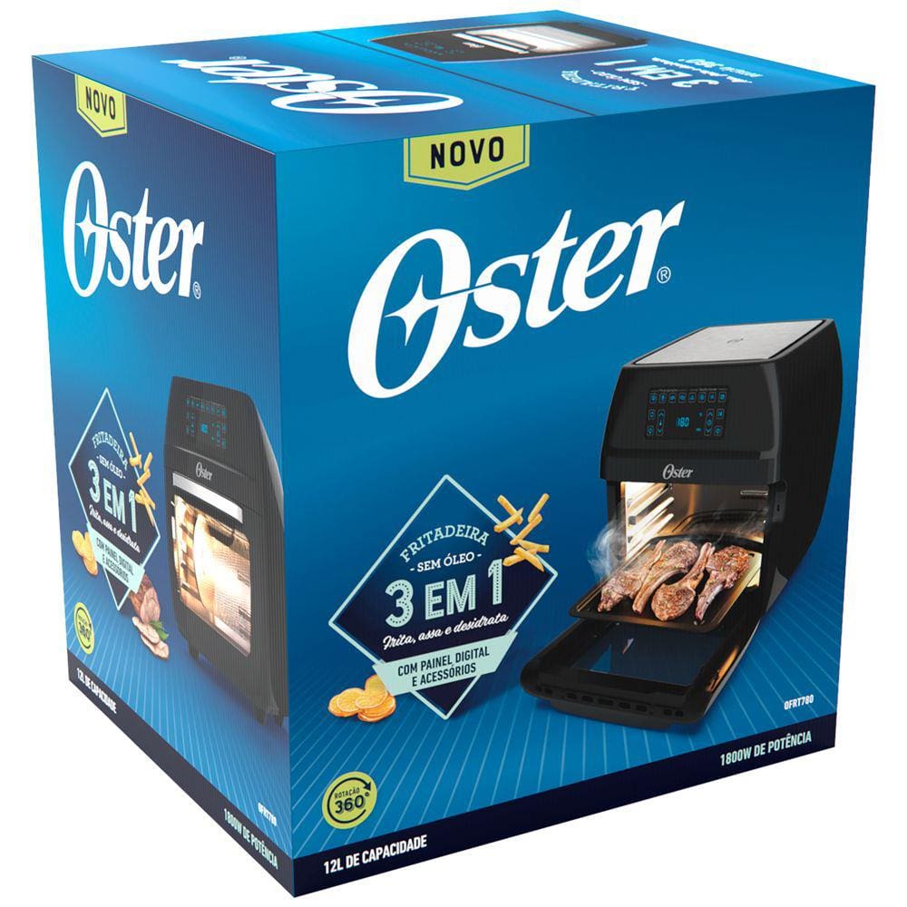 Fritadeira Elétrica Sem Óleo Oster Oven Fryer OFRT780 3 em 1 12L - Preta