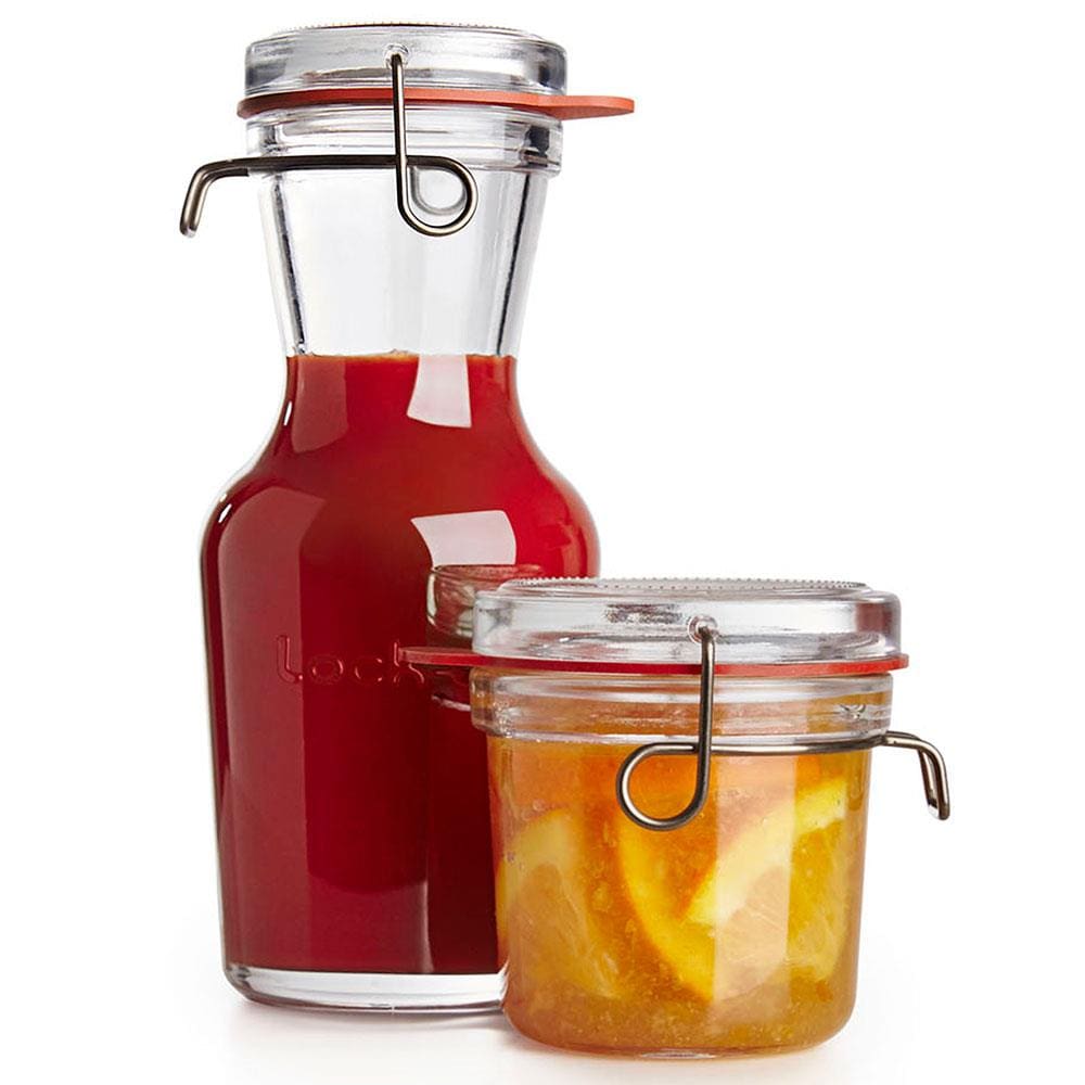 As jarras de vidro da coleção Lock Eat foram concebidos para armazenar diversos tipos de bebidas.
