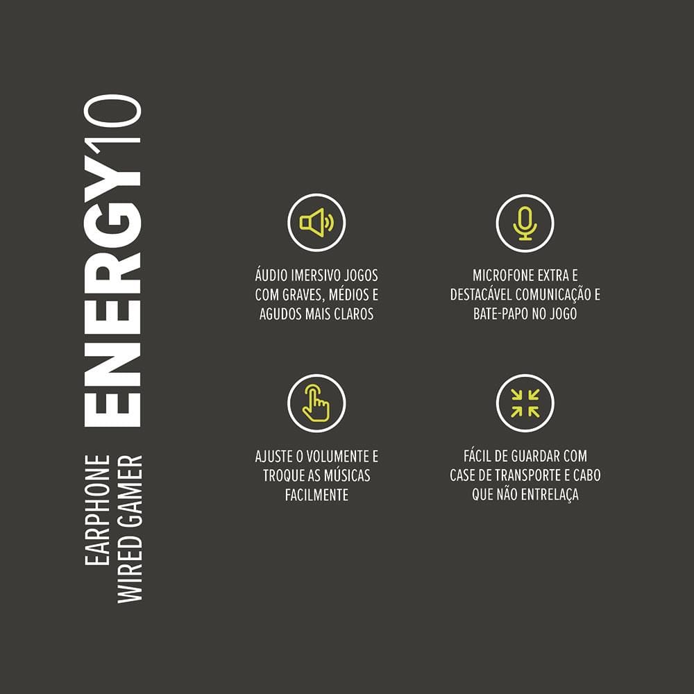 Como Energy 10 você seus amigos e inimigos como nunca antes. Feito para dispositivos móveis e compatível com todas as plataformas, para você jogar conforme a sua preferência, ele possui cabo que não entrelaça e conector em 90 graus, além de fazer conexão com menos obstrução de movimento e ser otimizado para modo portátil.