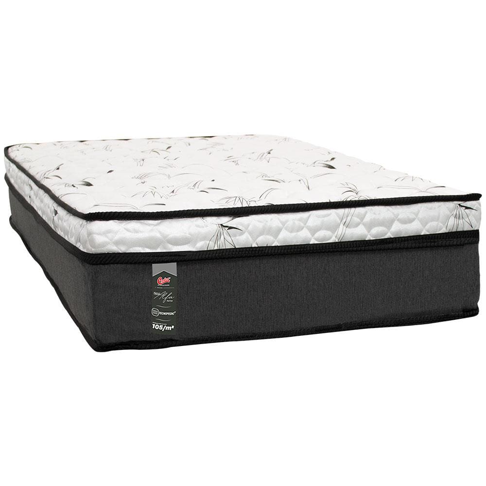 Características Gerais: - Tampo em Malha - Lateral em Suede - Molas: Molejo Tecnopedic - Pillow Euro - Revestimento em tecido Malha - Nível de conforto: Macio - One Face: Usa-se somente um lado - Suporta até 110kg