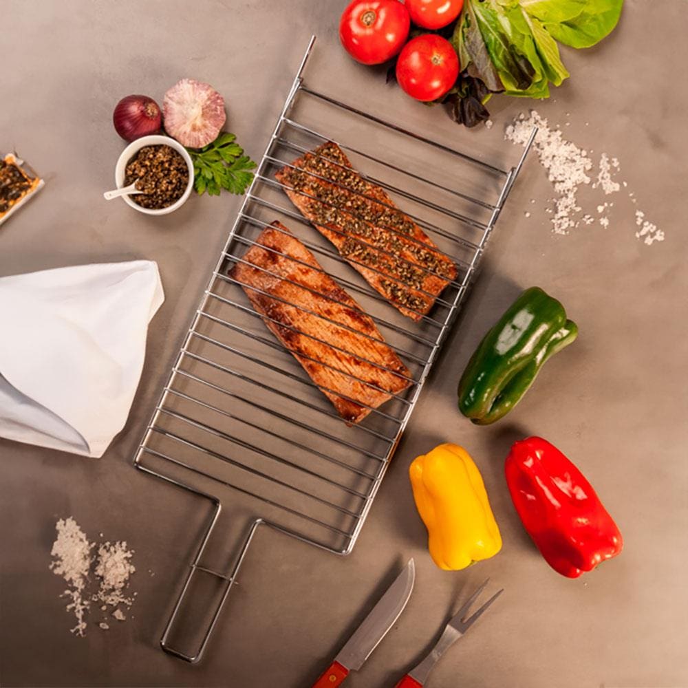 - Mas não é só peixe! Esta grelha versátil também é ideal para assar outras carnes, garantindo um sabor excepcional a cada mordida