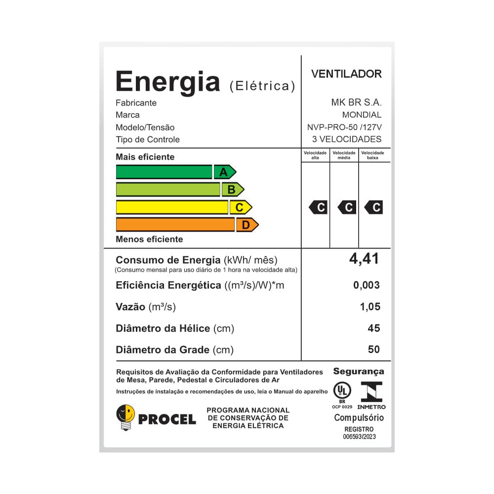 Ventilador de Parede 50cm Mondial Turbo Pro NVP com 5 Pás, 3 Velocidades - Preto