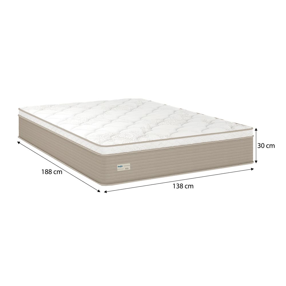 Conteúdo da Embalagem: -Colchão Casal Umaflex Milão com Euro Pillow e Molas Ensacadas 30x138x188 – Bege/Branco.