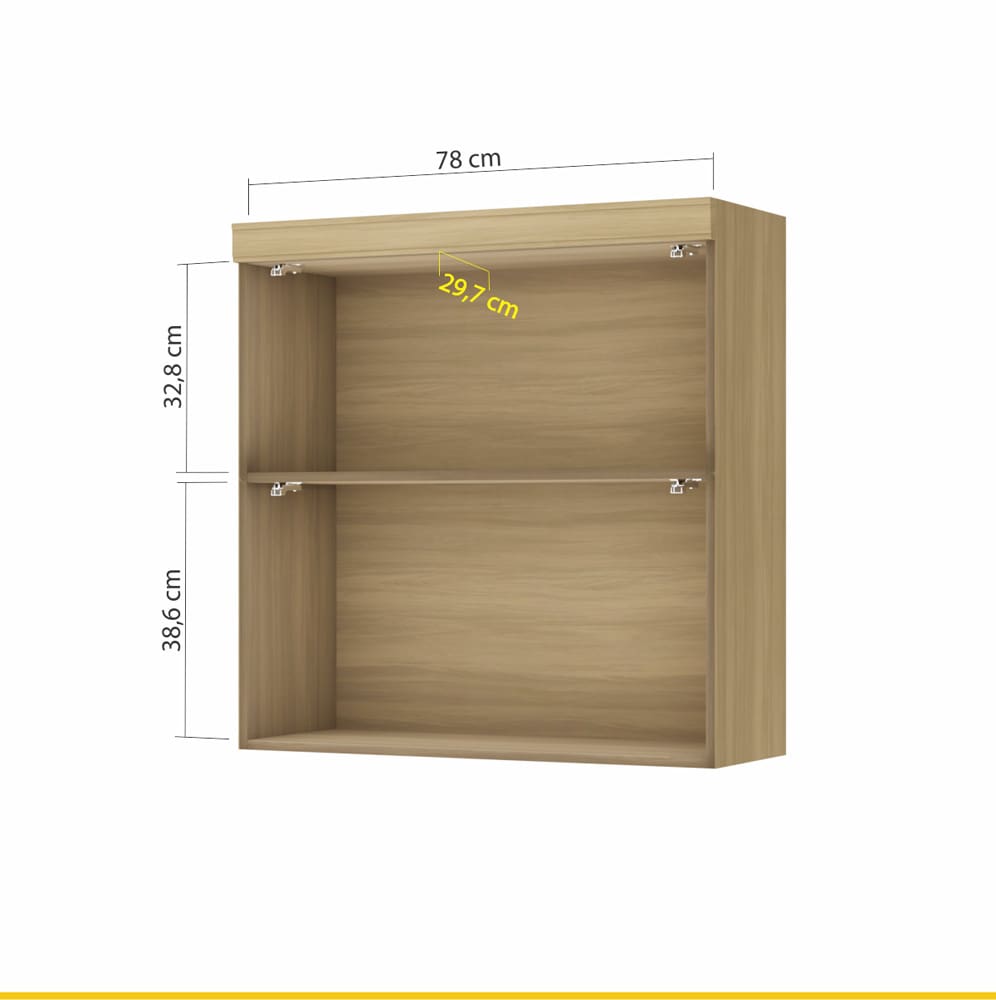 Conteúdo da Embalagem: -1 Armário Aéreo Nesher Marquesa com 2 Portas Basculantes e 1 Prateleira Nature - 80cm de Largura;
