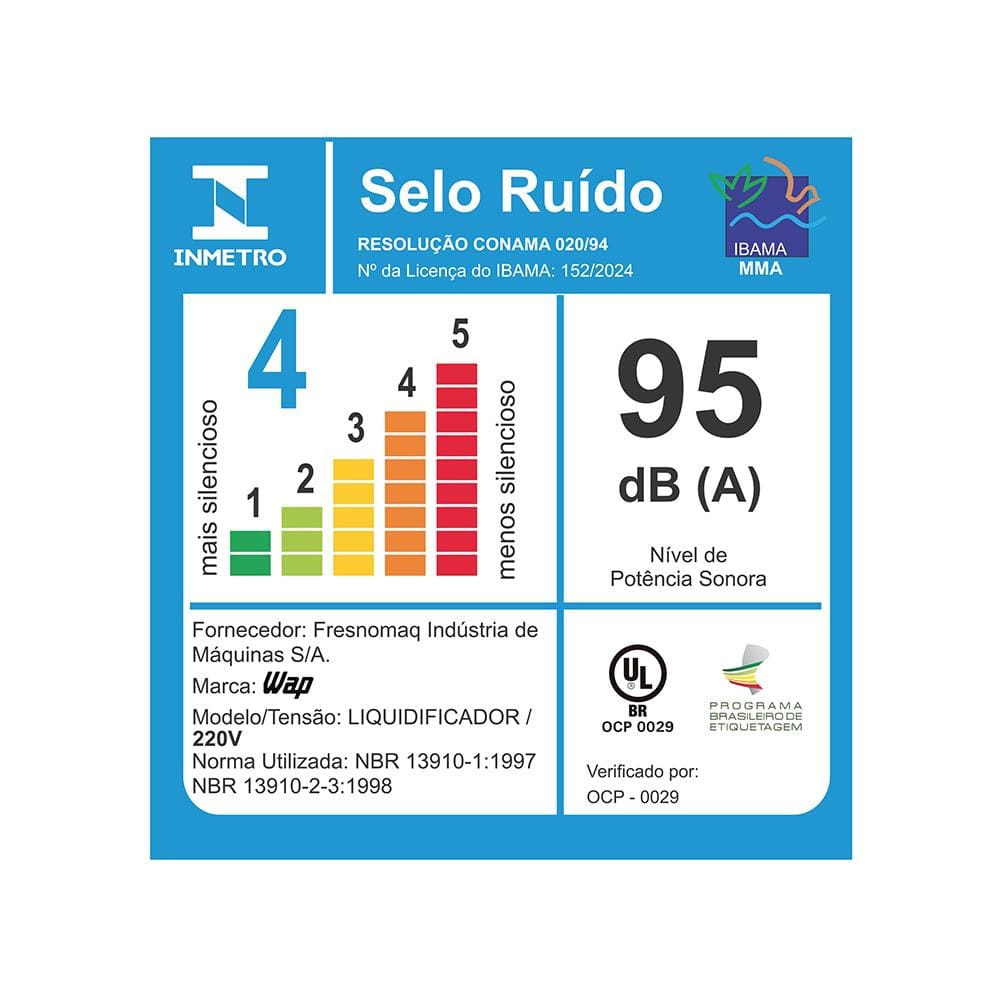 Liquidificador Wap Prosdócimo 900W Cinza/Preto 2L - WB2000