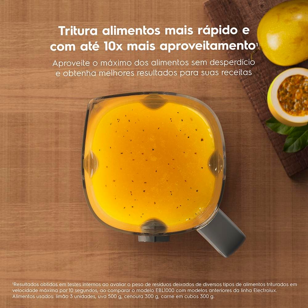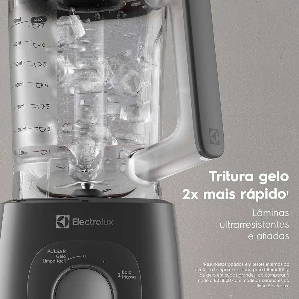 Transforme suas receitas com o Liquidificador Electrolux EBL1000 Efficient TriForce. Equipado com potência de 1000W, ele garante resultados rápidos e consistentes para todas as preparações do dia a dia.