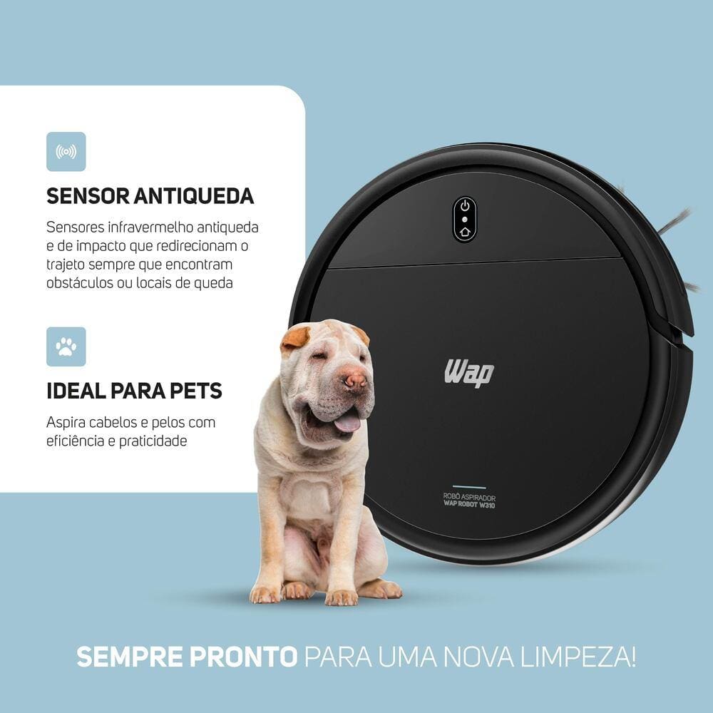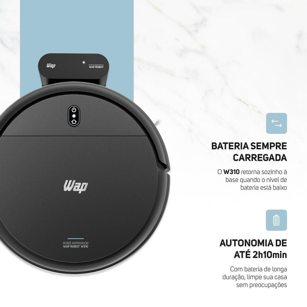 Robô Aspirador de Pó WAP ROBOT W310 30W 3 em 1 Base Carregadora Bivolt