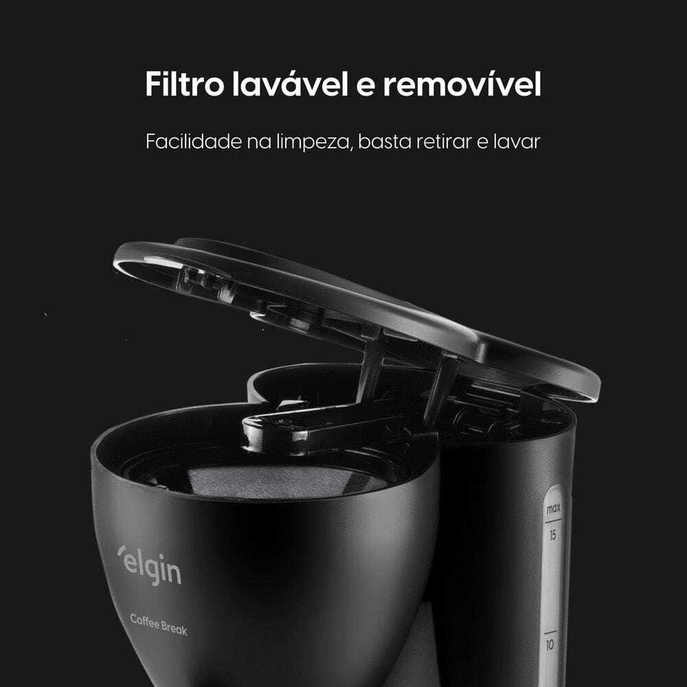 Cafeteira Elétrica Elgin Coffee Break 15 Xícaras Preta 650W Filtro Permanente Sistema Corta-Pingo