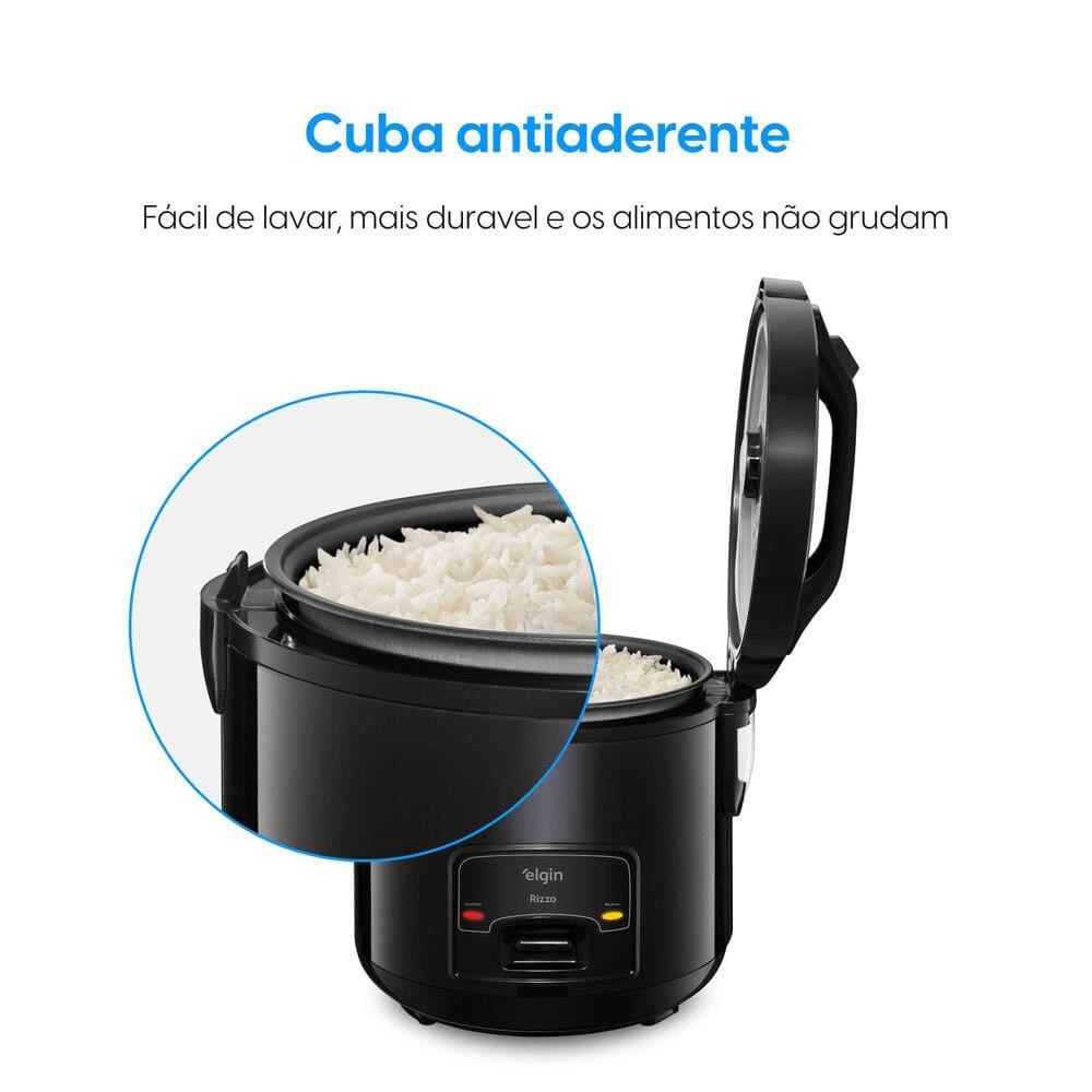 Panela Elétrica de Arroz Elgin Rizzo PAR40 5 Xícaras 1L 400W Cuba Antiaderente Função Aquecer Design Black Piano