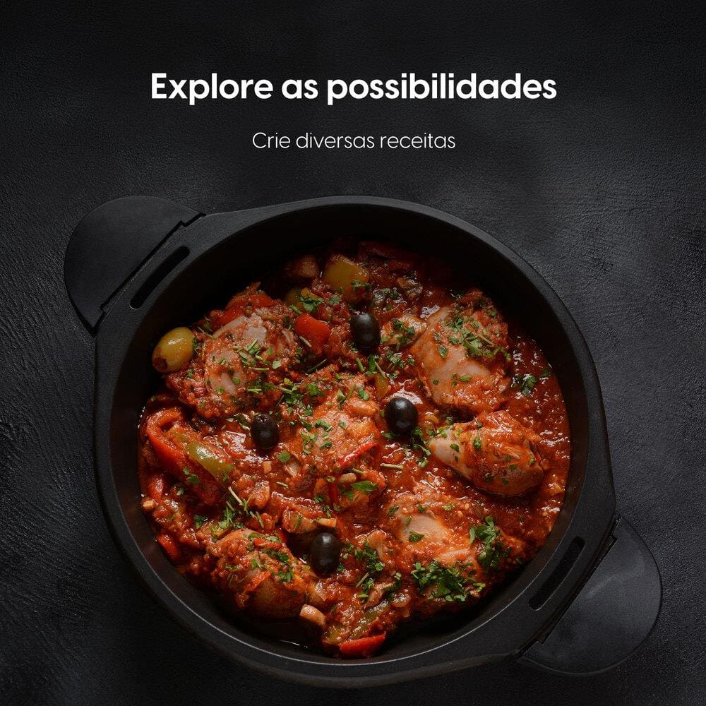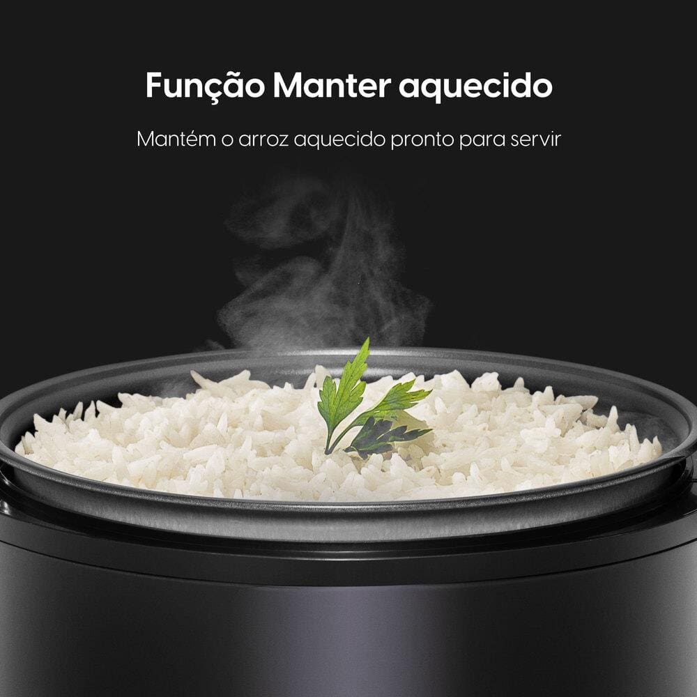 A função 2 em 1 permite cozinhar arroz enquanto prepara outros alimentos no vapor com a bandeja extra inclusa. Com design black piano, adiciona um toque sofisticado à sua cozinha.