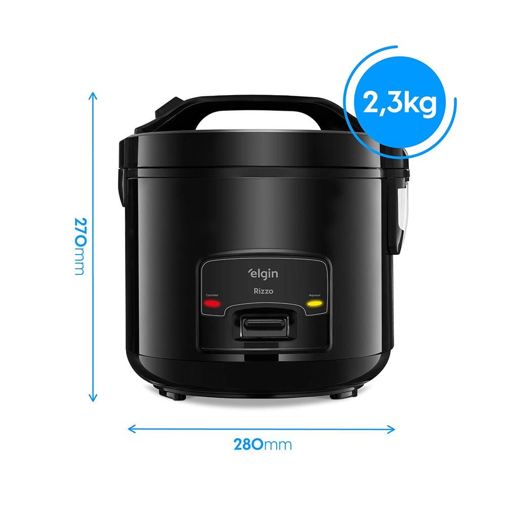 Facilite sua rotina na cozinha com a Panela Elétrica de Arroz Rizzoda Elgin! Com capacidade para 5 xícaras e potência de 400W, ela prepara um arroz soltinho e saboroso em poucos minutos.