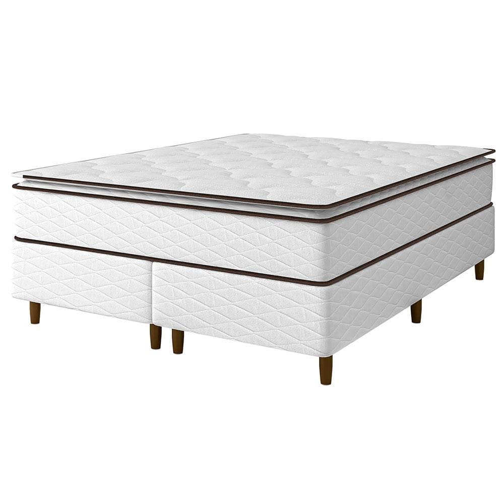 Cama Box Queen Size Umaflex New Itália com Molas Ensacadas e Pillow Top D26 - 63x158x198cm - Branco/Marrom