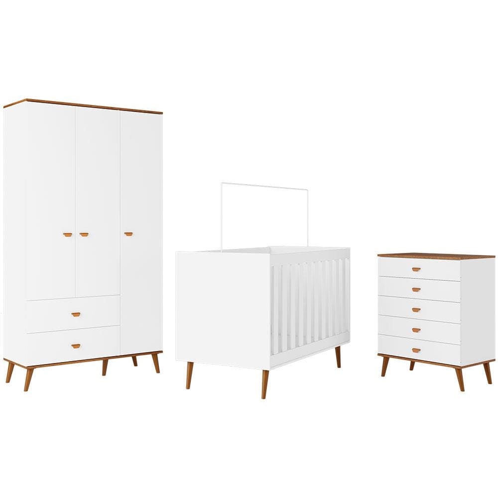 Guarda-Roupa Bartira Ternura com 3 Portas, 2 Gavetas + Cômoda Ternura com 5 Gavetas + Berço Móveis Estrela Ternura