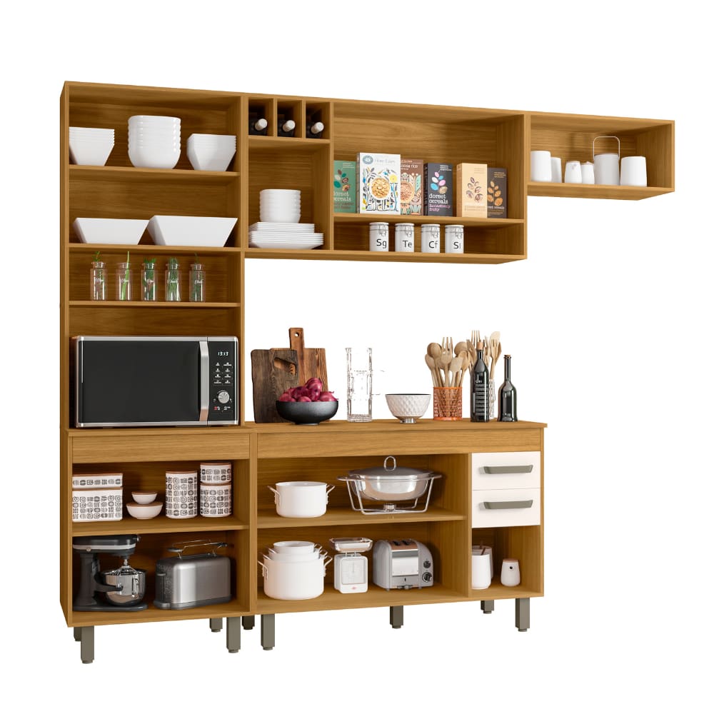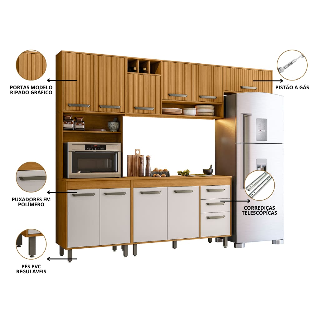Cozinha com Balcão Poliman Malta 11 Portas Pintura Acetinada Freijó/Off White