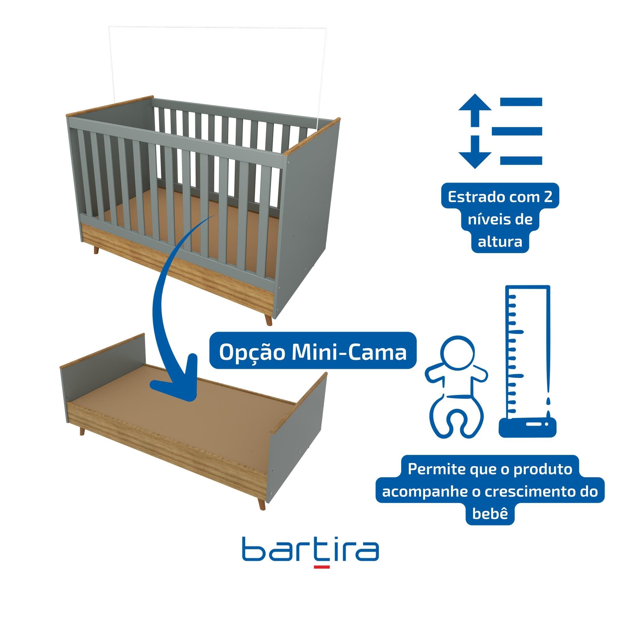 Quarto Infantil Completo Bartira Ternura Guarda-Roupa 3 Portas 2 Gavetas Cômoda 5 Gavetas Berço 2 em 1