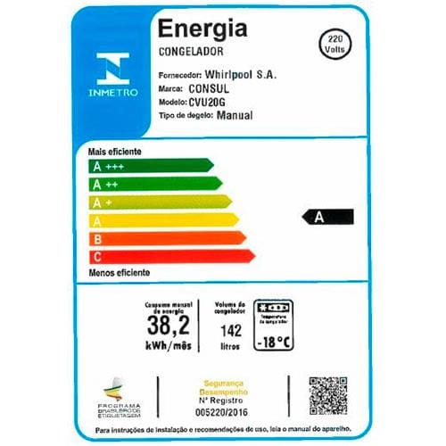 Características Gerais: - Classificação energética A: mais economia mês a mês
