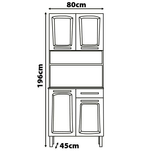 E mais, ela conta com espaçosas prateleiras, design atual para uma decoração mais moderna e amplo espaço interno para uma organização prática e eficiente das suas panelas, louças e mantimentos.