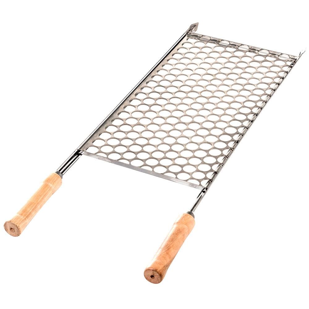 - Cabos em Madeira: proporcionam um toque clássico e confortável ao manusear a grelha, além de isolamento térmico para garantir a sua segurança durante o churrasco