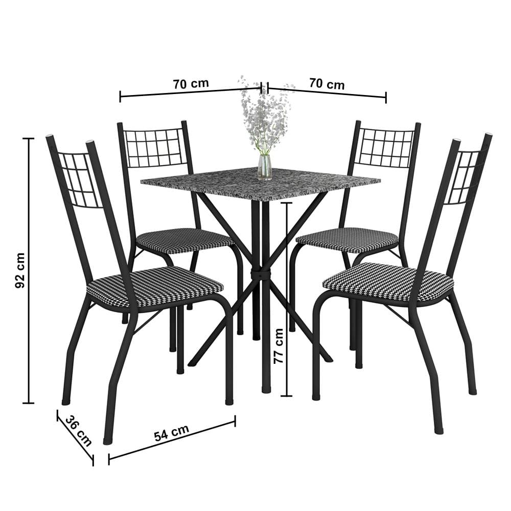 Conteúdo da Embalagem: -Mesa de Jantar de Granito Quadrada Fabone Brisa com 4 Cadeiras Estofadas.