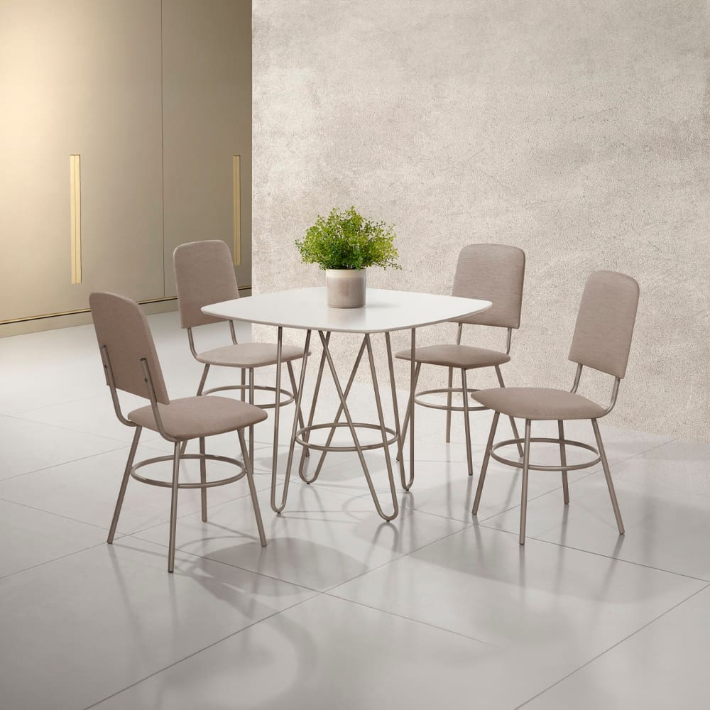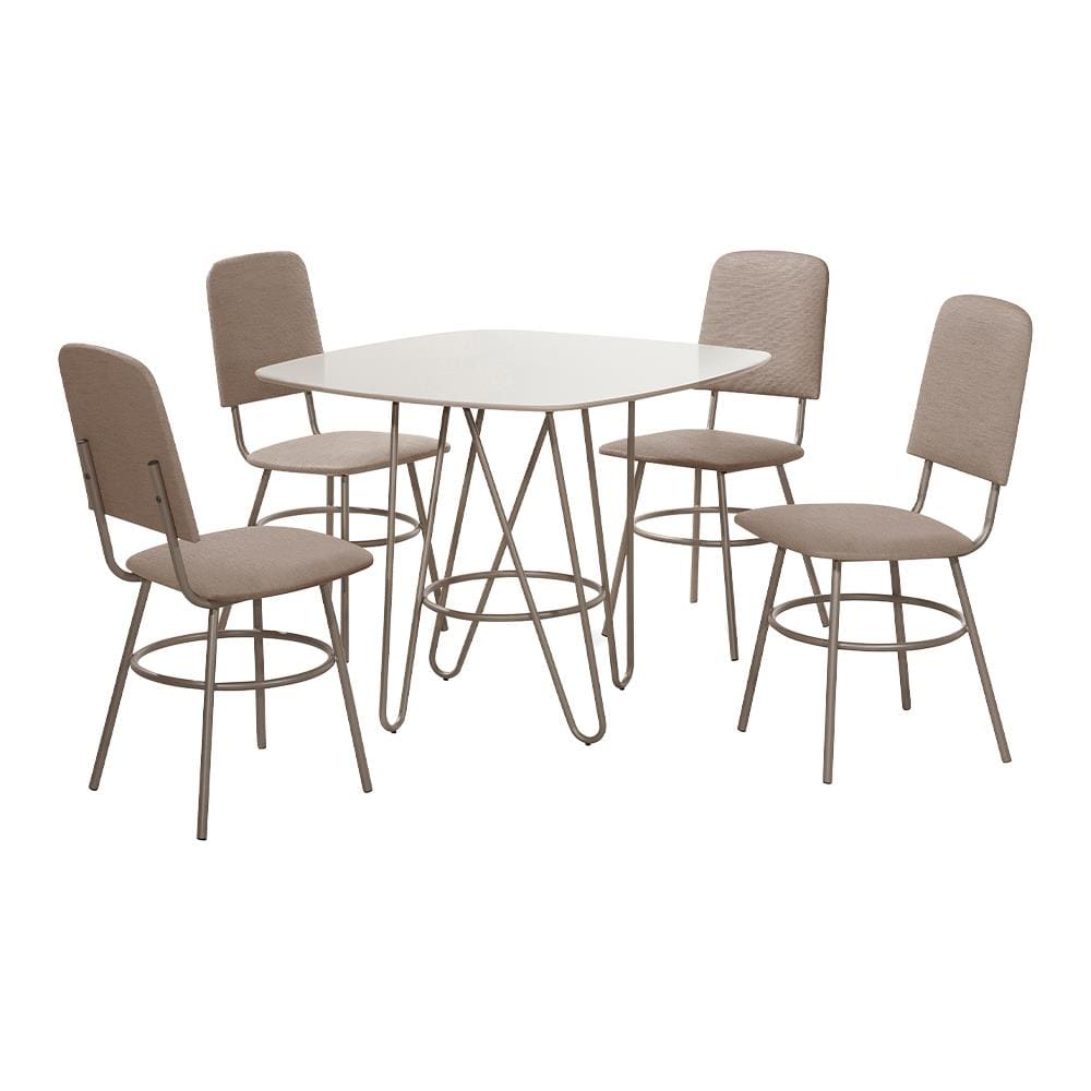 Mesa de Jantar Quadrada Aço Nobre Veneza com 4 Cadeiras Estofadas e Revestidas - Champagne e Off White