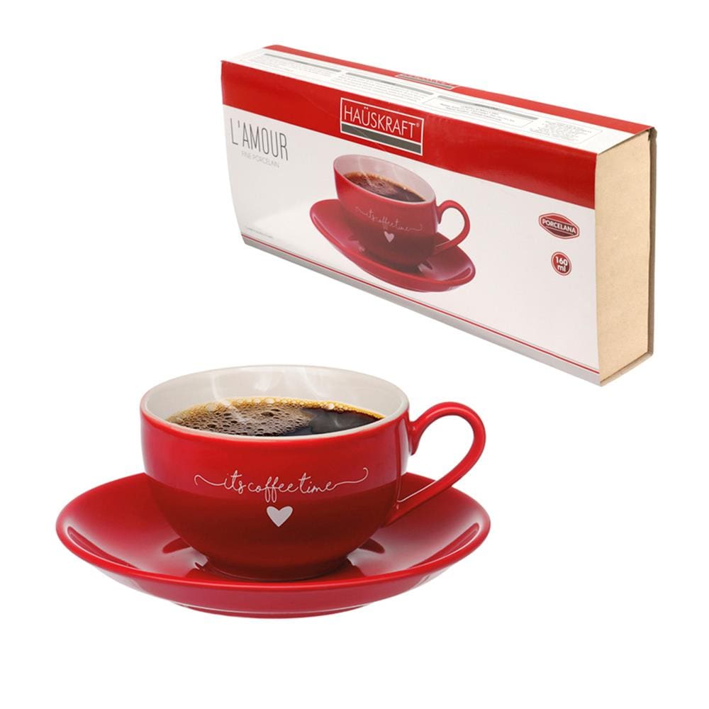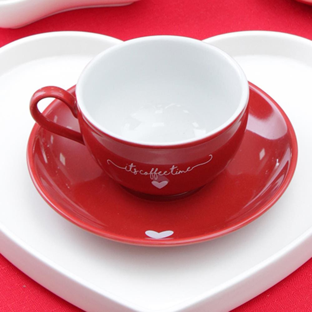 Jogo de Xícaras para Chá Hauskraft L`amour em Porcelana 160 ml Vermelha - 6 Peças
