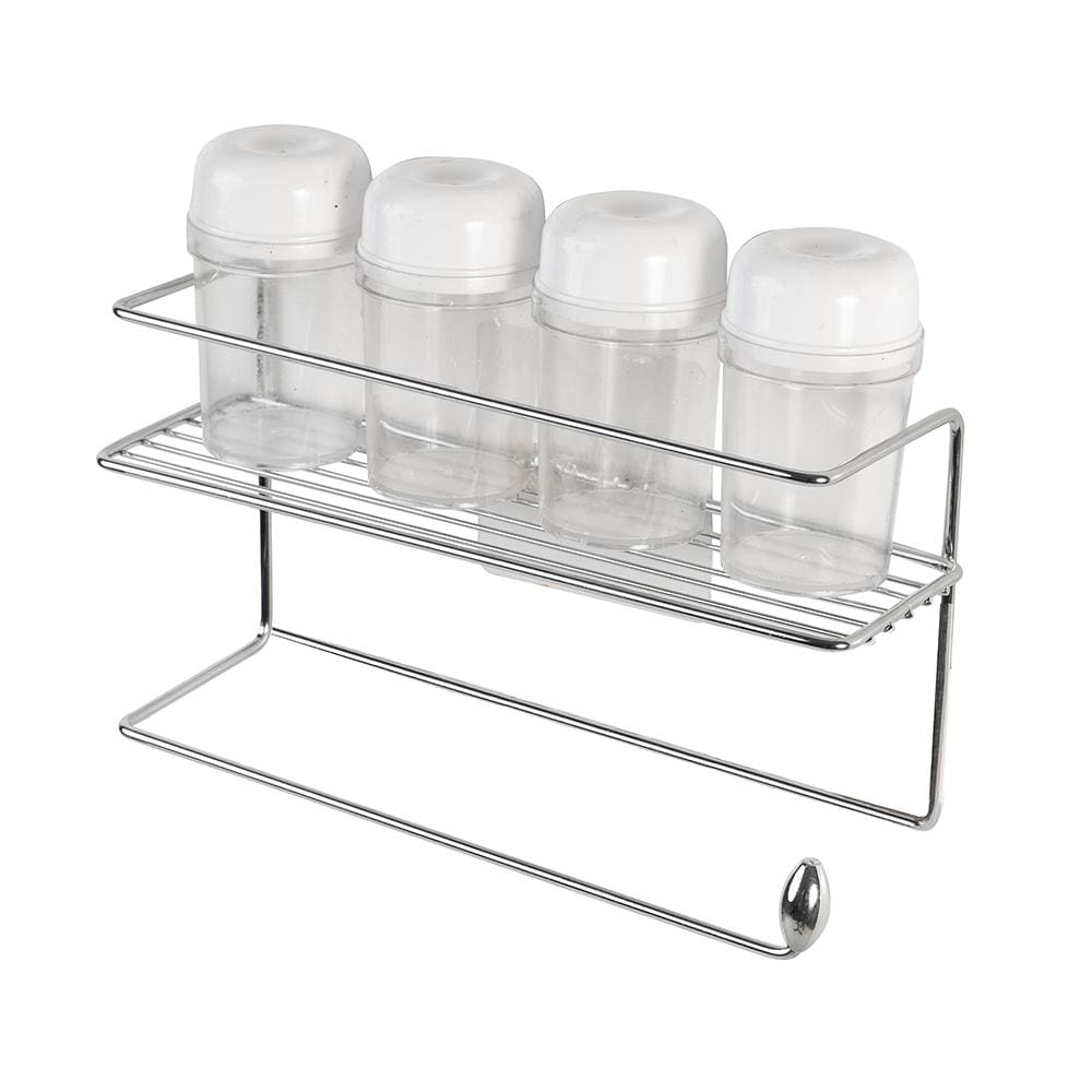 Com design funcional, esse suporte permite organizar até 4 potes para condimentos e um rolo de papel toalha, mantendo tudo ao seu alcance no dia a dia. Ideal para quem gosta de uma cozinha organizada e funcional.