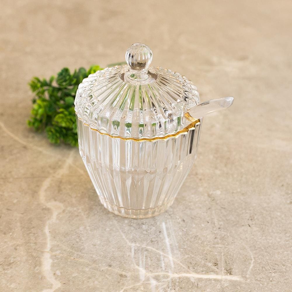 Açucareiro com Colher Wolff Império 8x8x11cm Cristal com Fio de Ouro