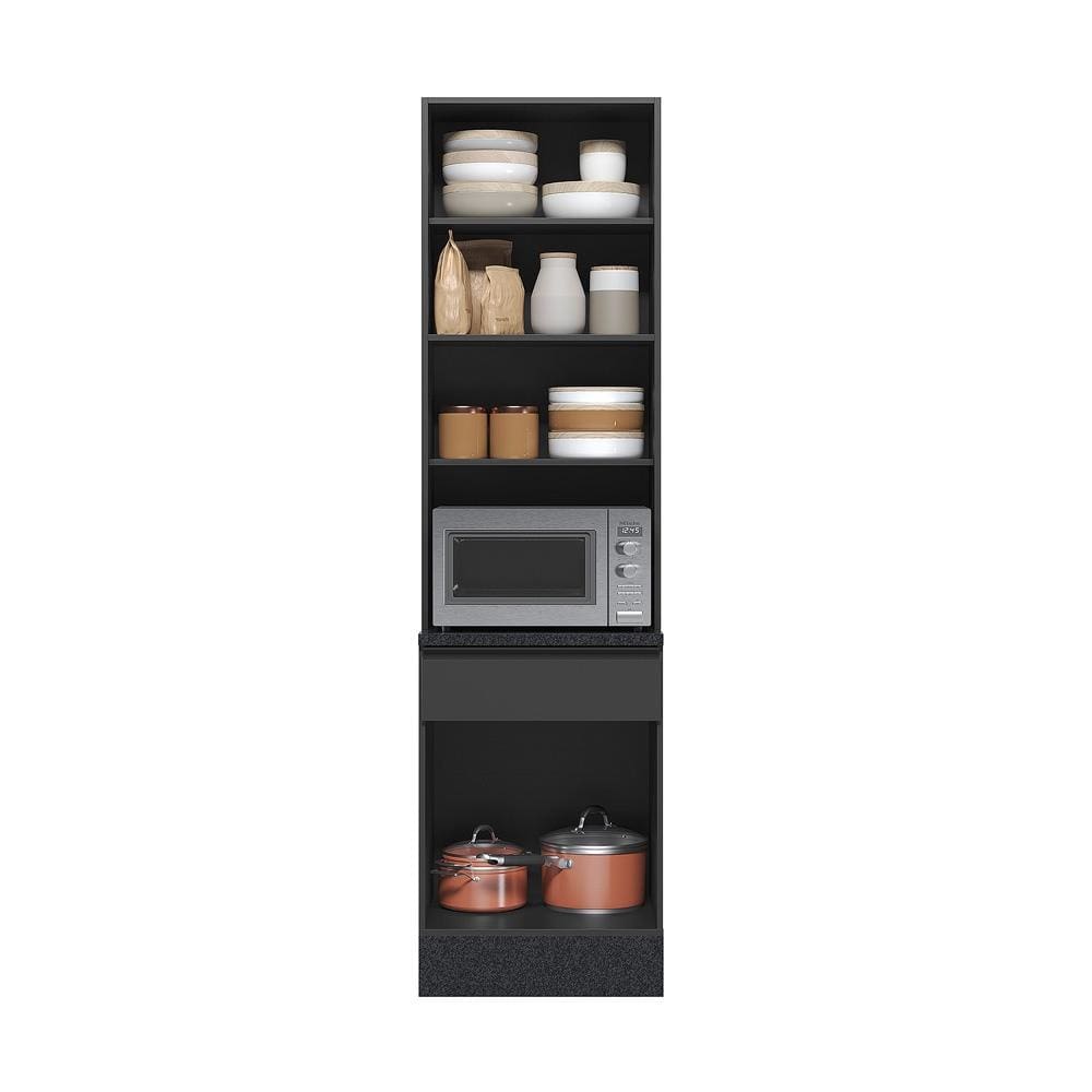 Paneleiro Duplo Poliman Etna Grafite praticidade, organização e versatilidade na sua cozinha! Conta com espaço para micro-ondas com dimensões adequadas para acomodar o eletrodoméstico, além de nicho decorativo que agrega funcionalidade e valor estético ao ambiente. Portas Resistentes Possui 02 portas de bater com dobradiças reforçadas de 35mm, 01 gaveta com corrediças telescópicas que permitem abertura total e prateleiras internas fixas, proporcionando melhor distribuição dos itens.
