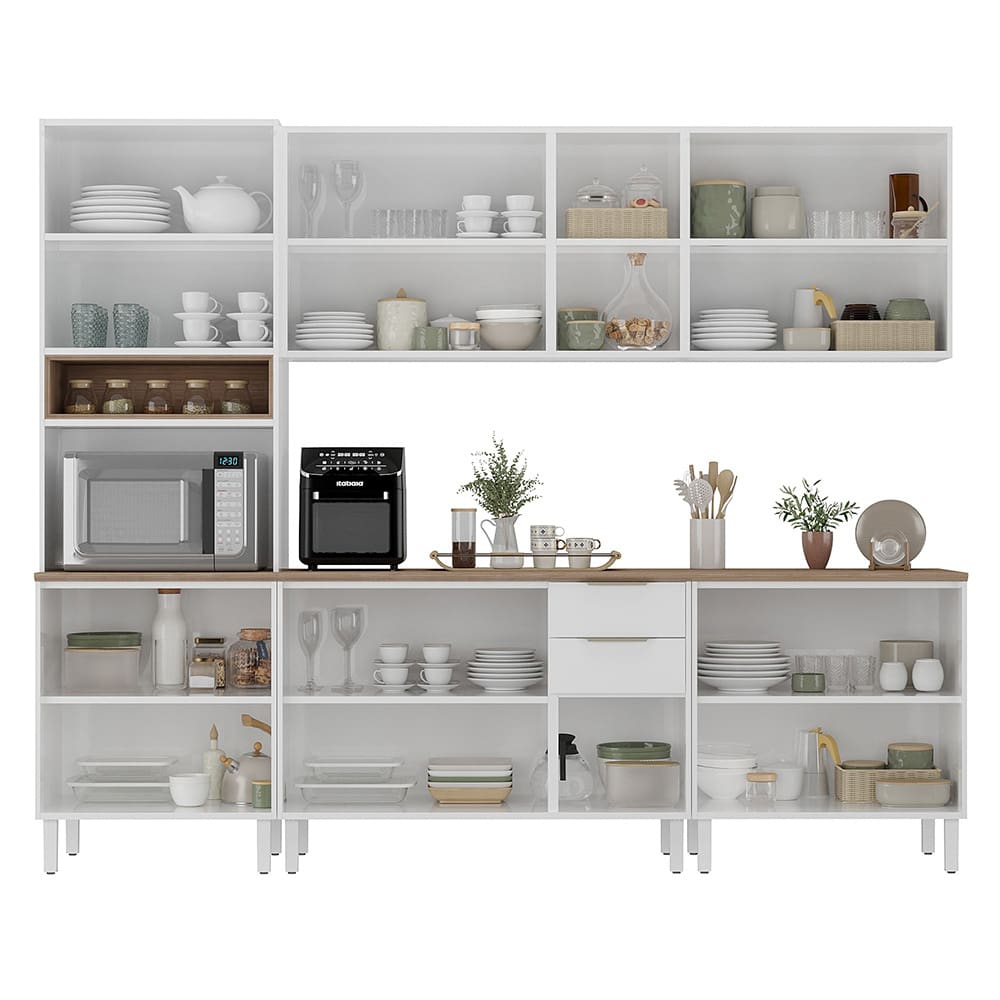 Cozinha Completa Itatiaia Renova com 14 Portas, 2 Gavetas, 7 Prateleiras, Nicho para Micro-ondas e 270cm de largura - Branco Neve