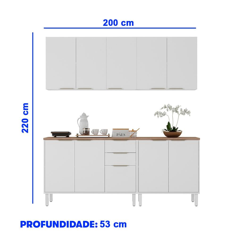 Cozinha Compacta Itatiaia Renova com 10 Portas, 2 Gavetas, 5 Prateleiras e 200cm de largura - Branco Neve