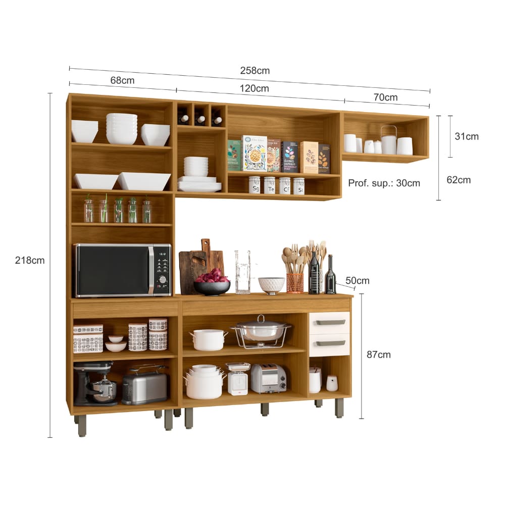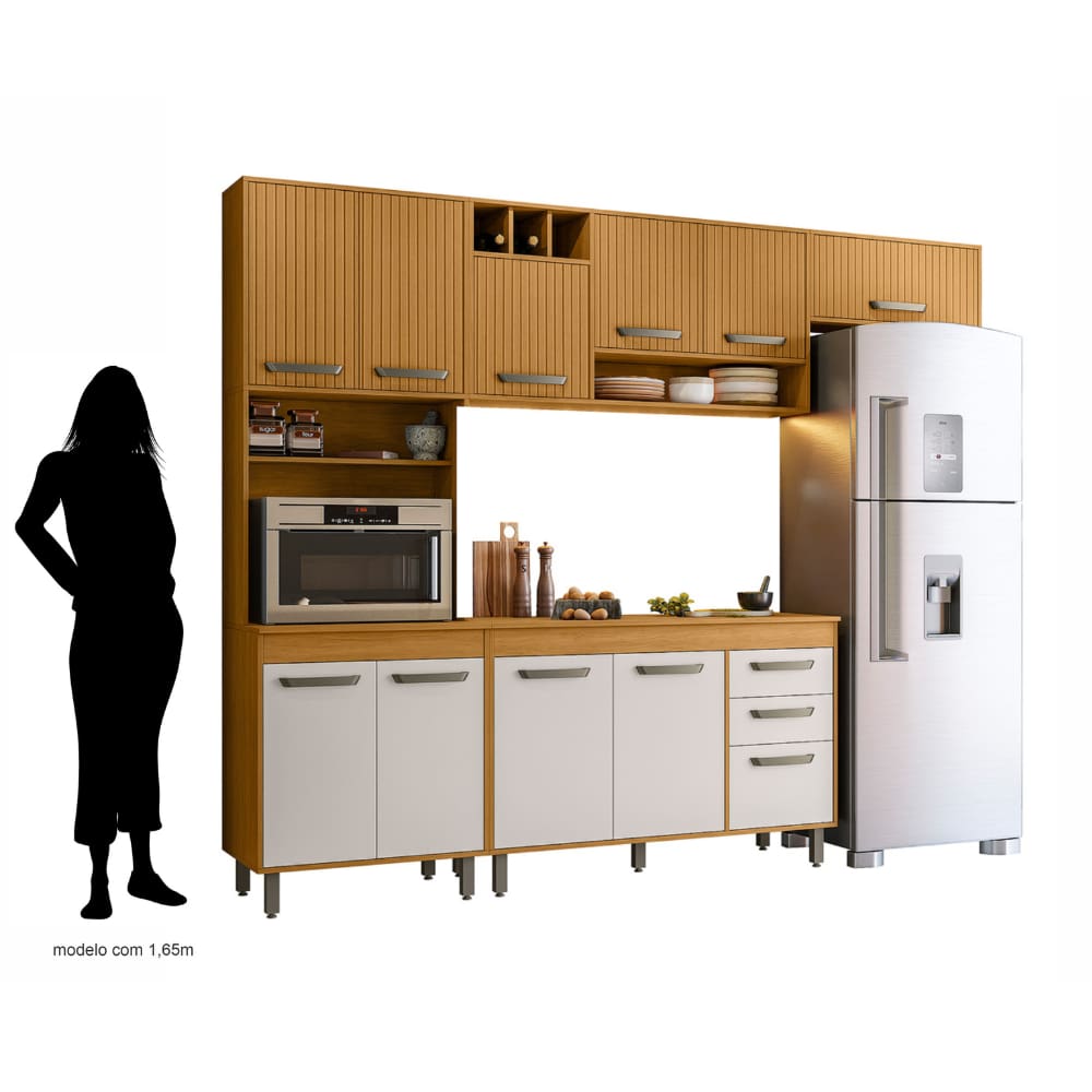Cozinha com Balcão Poliman Malta 11 Portas Pintura Acetinada Freijó/Off White