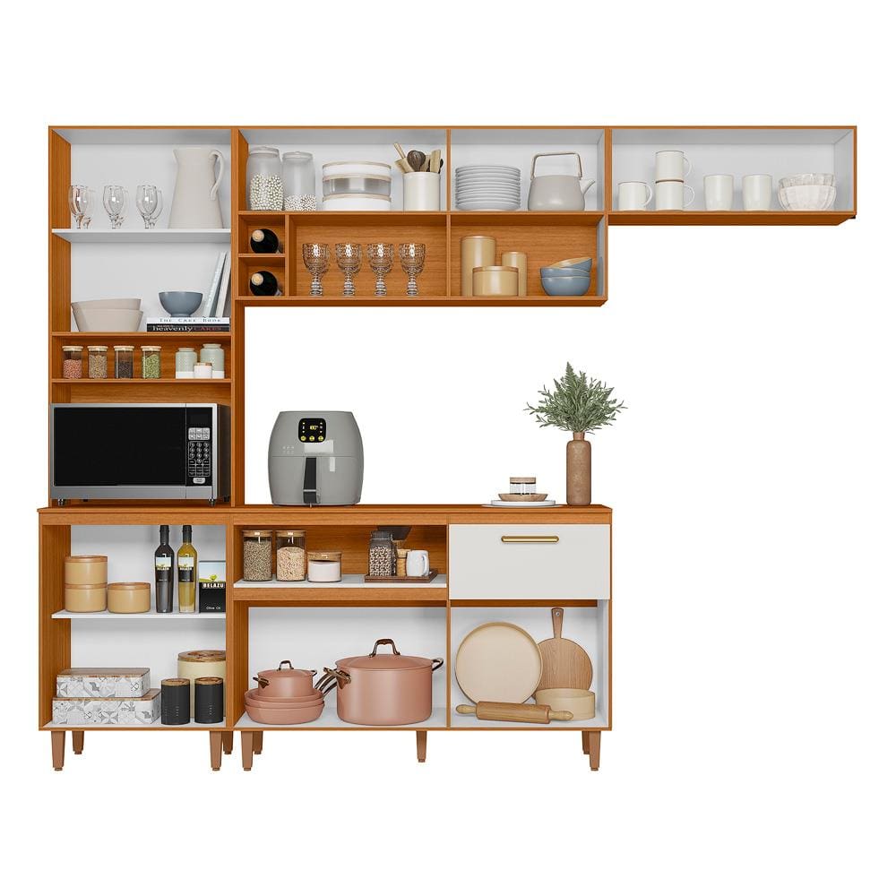 Cozinha com Balcão Poliman Sicília 10 Portas Acetinado Freijó/Off White