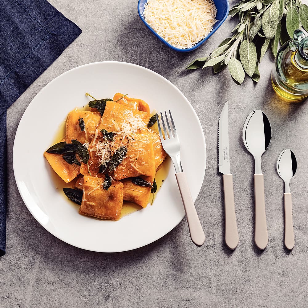 O Faqueiro Tramontina Leme 12 Peças em inox com cabos de polipropileno cinza. Com facas, garfos e colheres com excelente resistência e design anatômico, lâminas com tratamento térmico que garante maior durabilidade no fio de corte e resistência no uso.