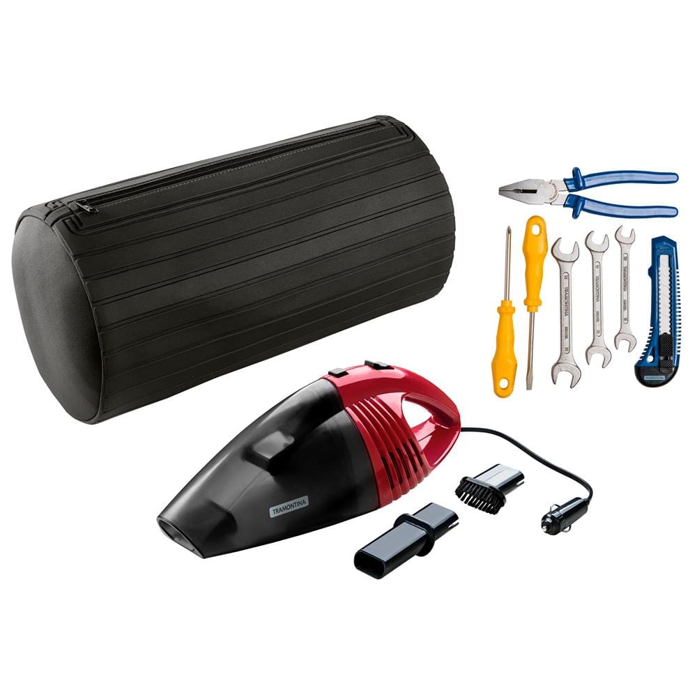 Além disso, também conta com aspirador de carro 12 V e um prático estojo em EVA, que pode ser fixado no porta-malas através de seu velcro.