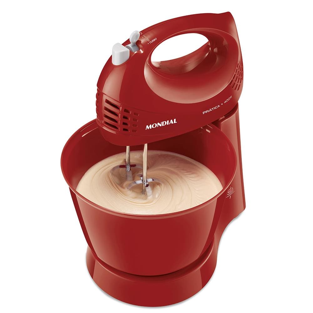 Batedeira - 3 Velocidades + Pulsar, Tigela de 3,6L, 1 par de batedores em aço cromado.