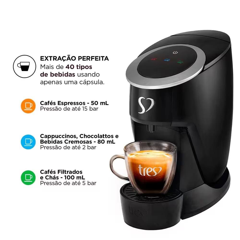 Conteúdo da Embalagem: - 01 Cafeteira Espresso TRES Touch Automática Multibebidas - Preta