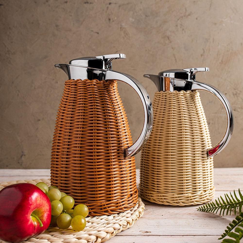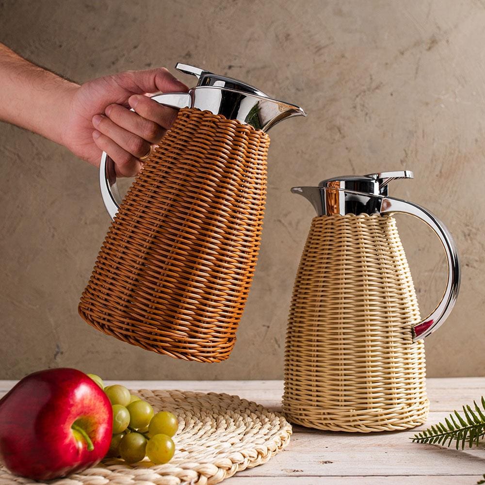Invista na Garrafa Térmica Wolff com Rattan e desfrute de uma experiência única de conforto e estilo em suas refeições e eventos.
